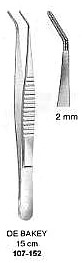 DeBakey Dressing-Tissue Forcep, Toothing DeBakey, Curved, 2mm wide, 15cm |