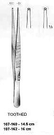 Medium Toothed Dressing-Tissue Forcep, 1x2 Teeth, 16cm |