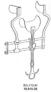 Balfour Abdominal Retractor, with solid side blades 7cm deep and solid center blade 45x80mm deep 180mm spread