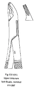 Extracting Forcep, Upper Anteriors Split Beaks, Serrated, English Pattern, Fig.150XAS,