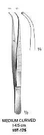 Meduim Curved, Dressing-Tissue Forcep, 1x2 Teeth, 14.5cm
