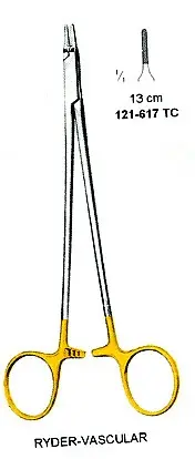 Needle Holder, Ryder-Vascular, Rings Gold Platted, with TC, 13cm