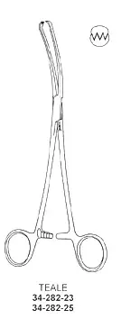 Teale Vulsellum Forcep, Curved, sideways with 3x4 teeth, 23cm / 9"