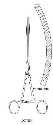 Doyen Intestinal Clamp Forcep, with diagonal serrations, Curved, 23cm / 9"