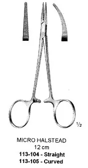 Micro Halstead Haemostatic Forcep, Curved, 12cm