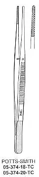 Cross Serrated, Tungsten Carbide Inserts, with Gold Plated Ends,POTTS-SMITH TC Dressing Forcep,20cm / 8"