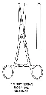 Presbyterian-Hospital Tube Occluding Clamp, smooth jaws, English pattern, Straight, 18cm / 7"